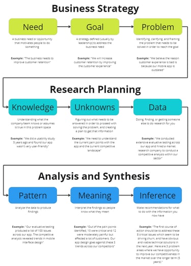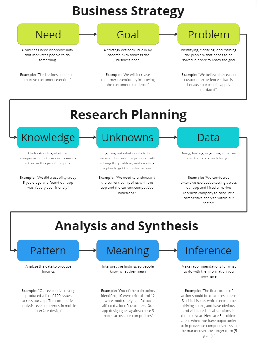 Brief, catchy definitions of insights tend to fail because they oversimplify the concept. The term “insight” is used so broadly that any quick summary will miss a few things, often focusing on a specific component of what an insight about the customer should have, like the user need or motivation, or the implication to the organization.
